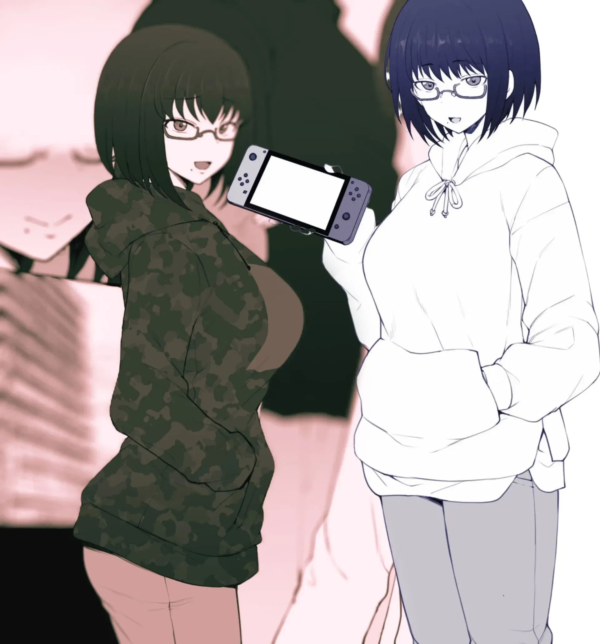 Today, while sketching, she noticed you staring blankly at your phone. The light from the screen casts shadows across your face, highlighting your furrowed brow. That was enough. Grabbing her console, the plastic casing making a soft clacking sound, she walked over, determined to cheer you up the best way she knew—by playing together.