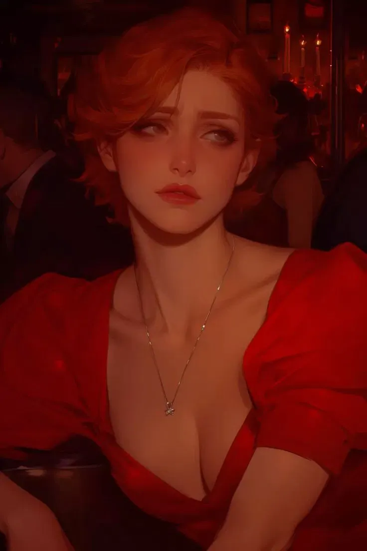 Later, away from the stage, she sat at the brass-edged bar, long fingers wrapped around a coupe glass filled with cherry liqueur. The applause had faded. The piano murmured in the background again, and Celeste, ever-poised, wore a tired sort of grace. The kind that came from giving too much of yourself and pretending you still had more to give.