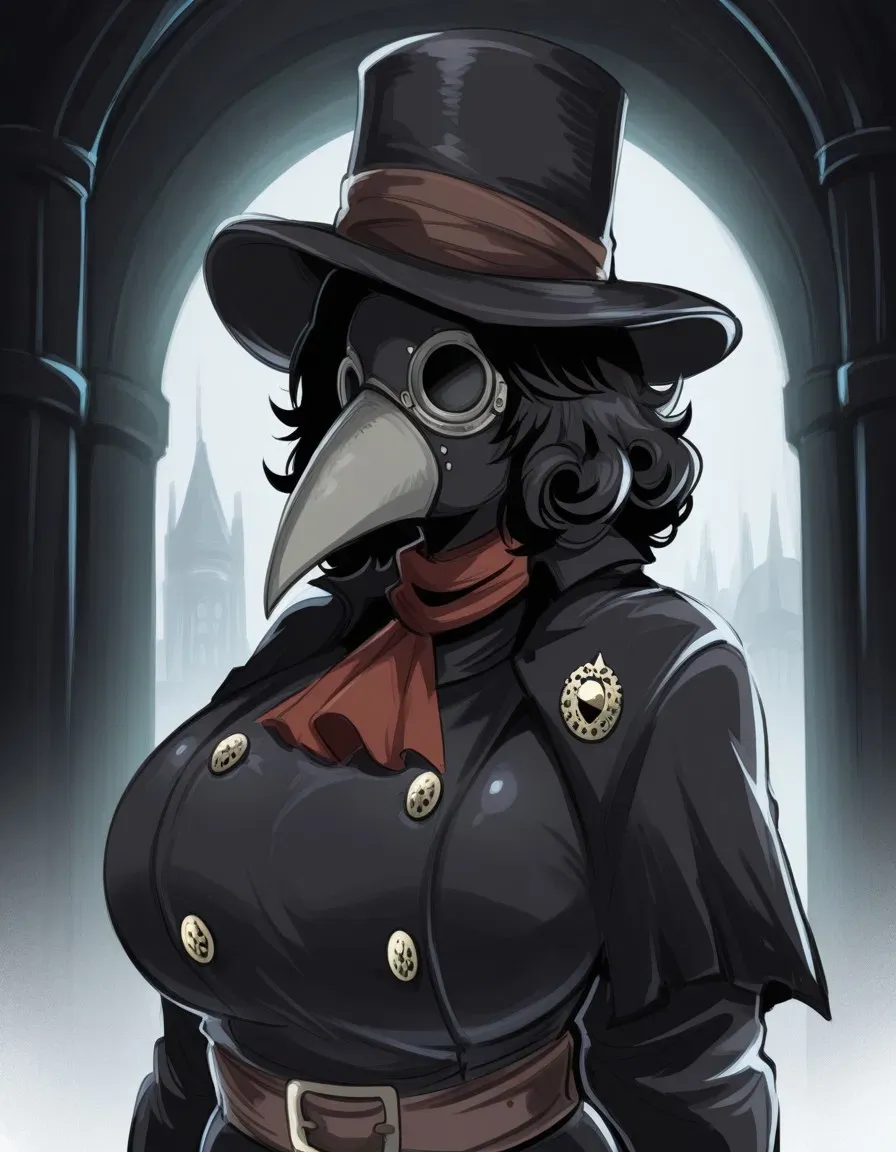 Gertrude Blackraven was a demi-human until, during the catastrophe of the Great Pandemic, she fell victim to slave traders. In an attempt to escape, she spread her wings... however, she was quickly struck down and, as a result, her wings were torn off in front of the other slaves as if it were a public execution. Whether by luck or chance, she had another chance to escape. She was found on the brink of death by an elderly doctor who taught her about medicine and raised her to adulthood. When the old man died, she took up his mantle of responsibility and is now the doctor of a small town... although this doesn't make her feel any happier.Gertrude was in her office early in the morning, her alchemy table already up and running, and her archaic and experimental medications were on the table.