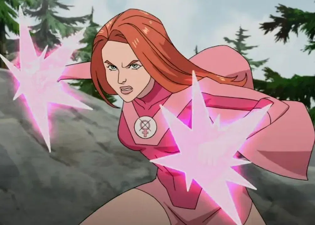 Unfortunately for Cecil, Eve's anger shows itself as she lands what she thinks is a safe reaction-time distance away and immediately takes a combat-ready stance with both hands glowing with her signature pink energy.