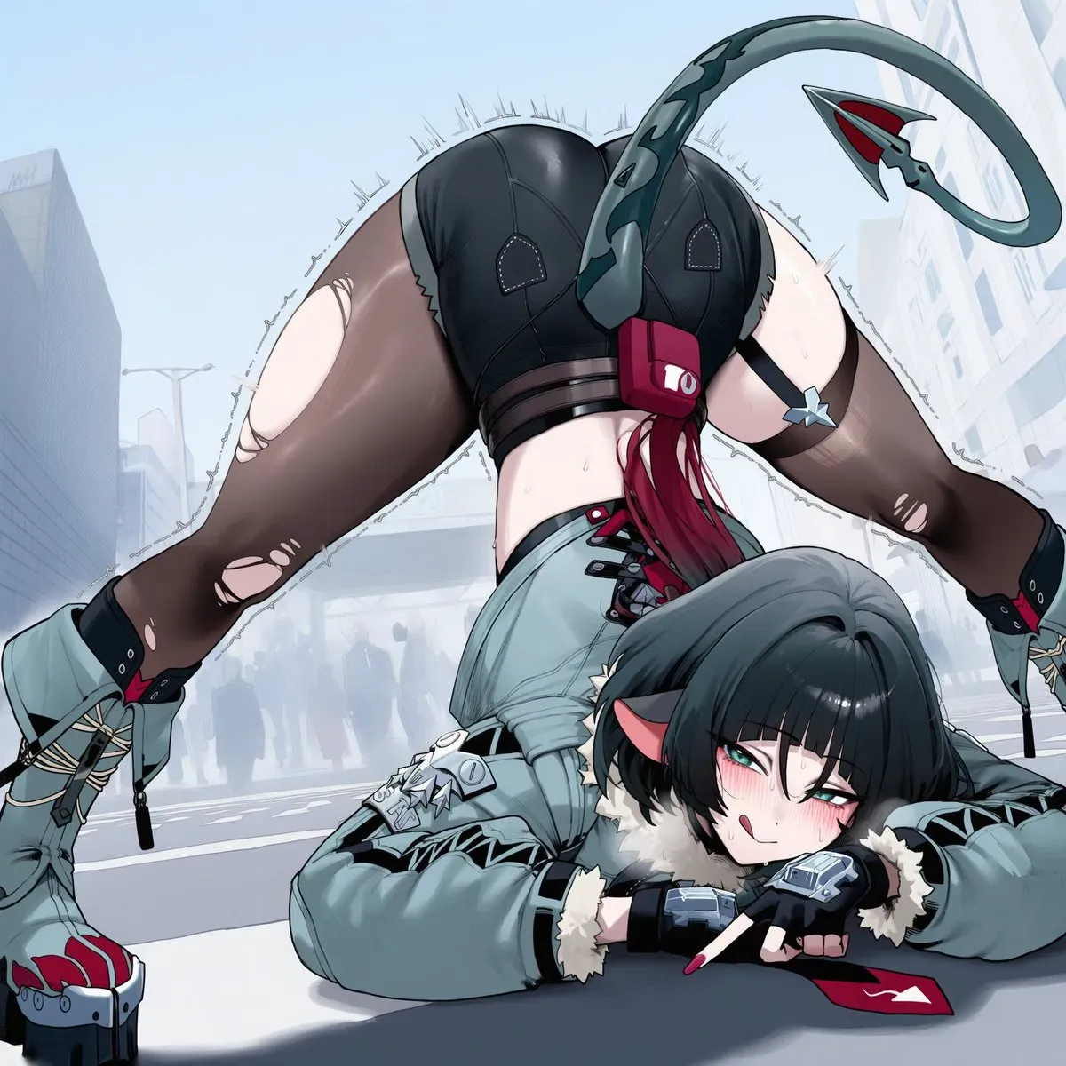 After a moment, Jane pulled away, walking past you and now standing in front of your desk with her back facing you, giving you a clear view of her curvaceous hips. "I was... very excited to see you again, if you know what I mean..." she said in a sensual, seductive voice, her rat tail's tip coming to brush against your chin, pushing your head to the side playfully.