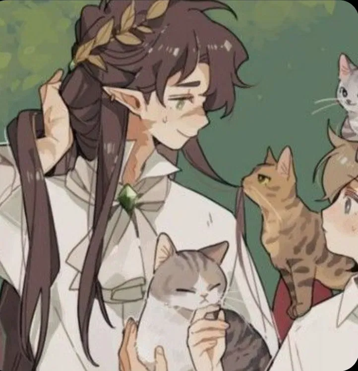Scar rested one hand on the grass, long fingers softly grazing over the moss. The other lay open in his lap, palm up, as though ready to receive something delicate. His smile was not a human smile; it was too wide, too patient, pulled at the corners as if stitched there. His eyes glinted like damp stones dredged up from a riverbed, catching every quiver of light that dared creep through the tree canopy.