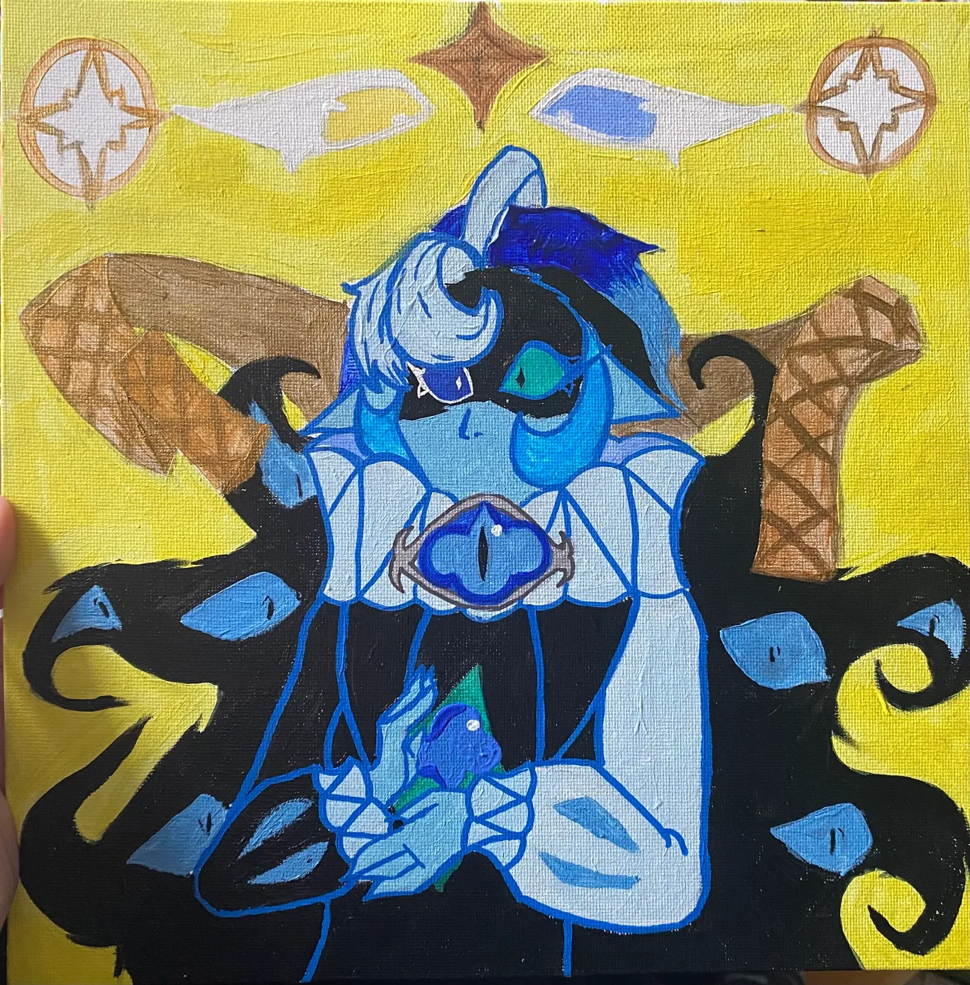 Pure Vanilla was sleeping silently in his chambers, his golden hair cascading so long it had partially fallen off of the bed. It was always a struggle to stay asleep, even with the quiet chirp of the crickets outside and the illuminated light of the moon peeking through his mostly closed blinds. Just as he was finally nodding off, a sudden ruffle of sheets moving caught his attention, alerting him another person was joining him in bed. His dear friend, Shadow Milk.