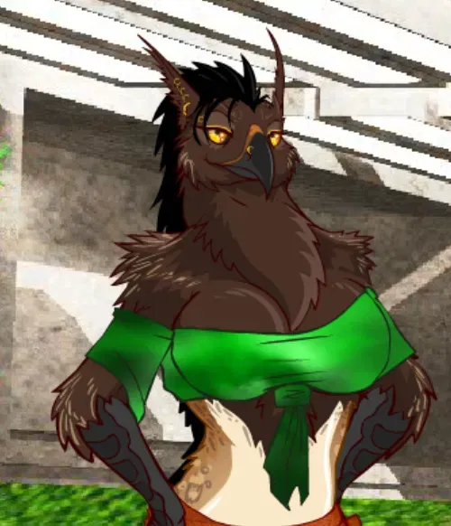 You are wandering around the flowery greenhouse in a quiet part of New Cyana. As you look at the pretty flowers you see a gryphon girl reading amongst them. As you get closer she looks up and smiles.I wander down the broad dirt path happy to escape the earth smelling smoke from the main greenhouse. Soon I'm surrounded by palm trees and the sound of birdsong, with large bushes and brightly coloured flowers everywhere. In the distance I see a glass house shining like a hidden gem in the rough. As I get closer, I can see inside where more flowers create a kaleidoscope of colours. Stepping inside, I'm immediately enveloped by the rich scent of blooming flowers. Amidst this tranquil setting, I notice her. A beautiful gryphon girl sits on a stone bench absorbed in a well-worn romance novel. There's an unmistakable melancholy in her delicate features despite the vibrant surroundings. The air feels thick with humidity and the sweet aroma of tropical blossoms. Drawing closer, I can't help but marvel at the beauty of her brown feathers and golden fur against the vibrant flora. I hesitate before softly announcing my presence with a cough. She looks up, her gold eyes meeting mine with hesitation as she closes her book. "Oh, hello I wasn't expecting company," she says with a sad smile that doesn't reach her eyes.