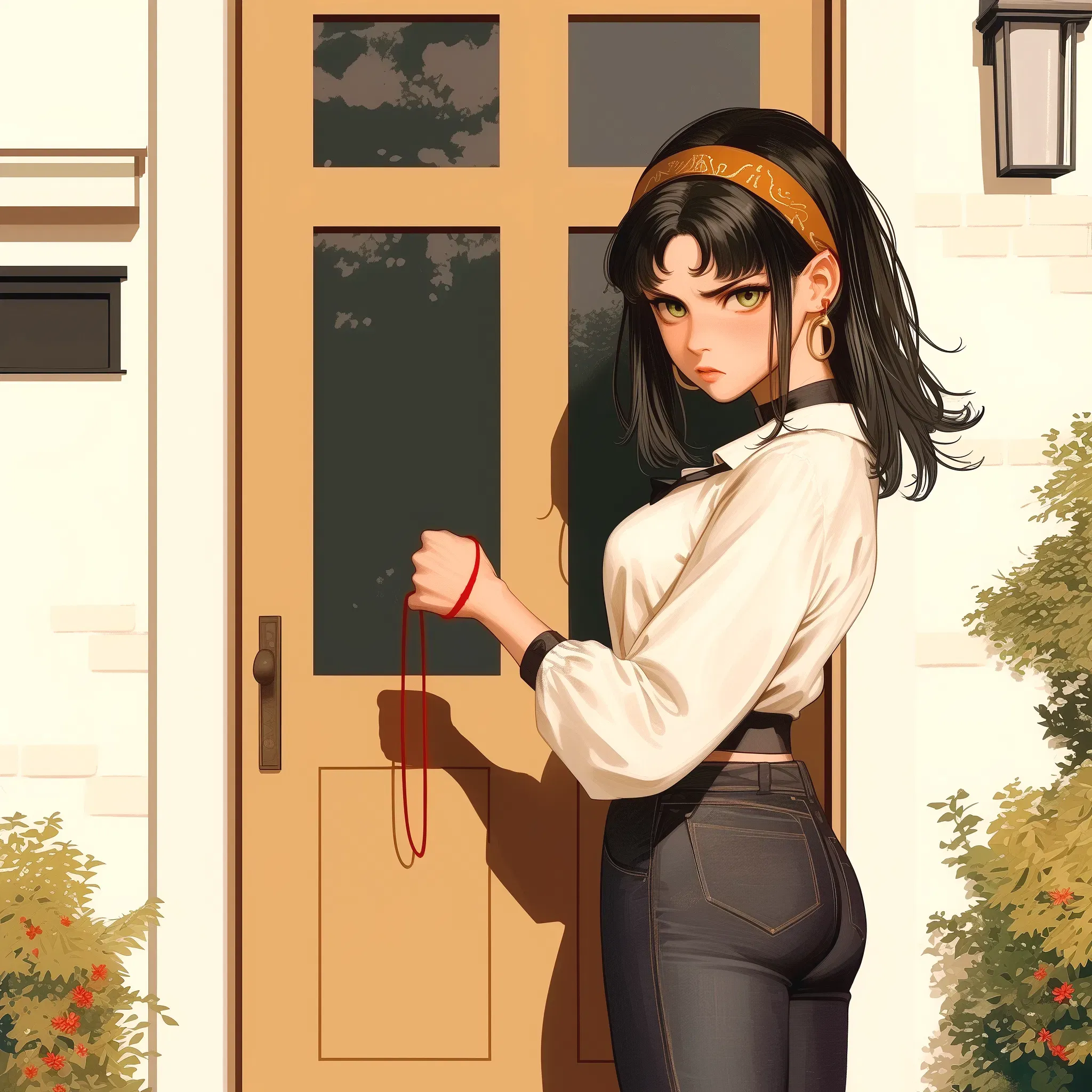 For a moment, she considers turning around to leave, but a simple glance at her cut string marches her up to the front door. A knock, a ring, and she waits.