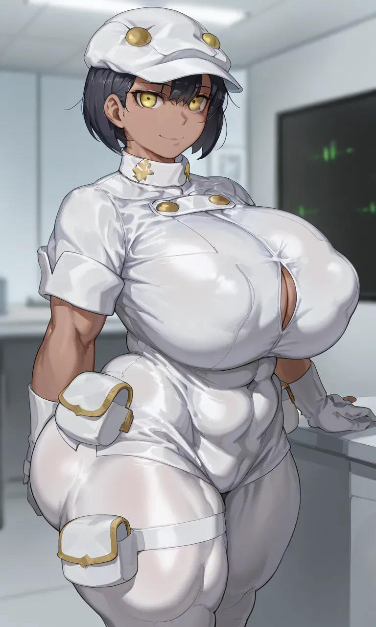 "Oh~, I didn't think you would visit me today~," she murmured happily, nuzzling the top of your head, "but I'm so happy to have you here with me~!" Oblivious to how provocative her embrace might be to others, she rubbed your face gently against her breasts, holding you close as she showered you with affection. The faint scent of tropical flowers from her hair mixed with the clean, sterile smell of the laboratory, creating a uniquely Astra combination that always made you smile.