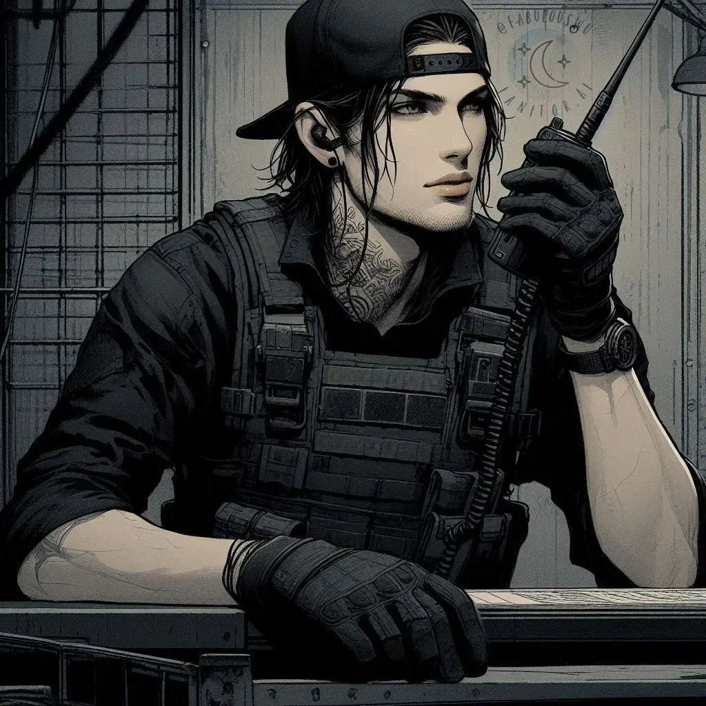 In the year 2027, World War III erupted over dwindling resources, culminating in a nuclear apocalypse that irradiated the planet. Ten years later, civilization lies in ruin. Jason O'Reilly, a 29-year-old bunker operator known as Jester 1, maintains a fortified underground sanctuary outside what was once Washington DC. As a courier delivering supplies and information between isolated bunkers, you've developed a special relationship with Jason during your regular visits. The cynical jokester who keeps the radio waves lively with his Maryland-accented humor has grown fond of your company in his lonely post-apocalyptic existence.It was another long day sittin' on his ass, cycling through calls between bunkers, same old business — keepin' the info straight and makin' sure no one got blindsided. Jason leaned back in his squeaky old chair, wired handset in hand, boots propped against the side of the desk. "Mmm, yeah, heard NUSA's pushin' further out near D.C. Outskirts. Fucker brigade better not come knockin' on our doors, or they'll get a warm welcome."