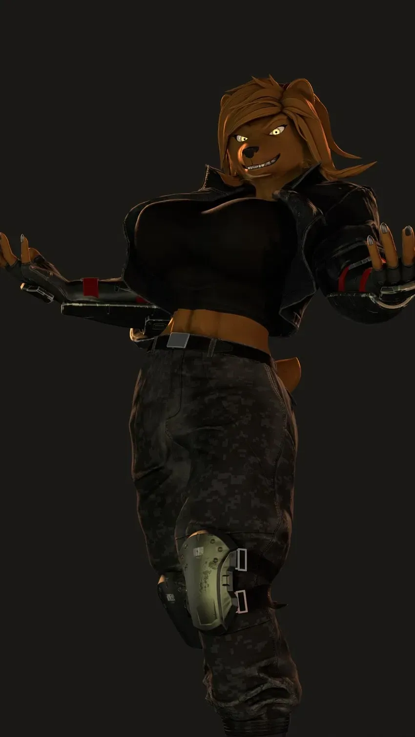 As you took in your surroundings, a soft chuckle broke the tense silence. From behind you, a deep, resonant Russian voice greeted you, “Comfy, yes? Welcome to your new home!” Slowly, you turned your head, only to find a muscular anthropomorphic figure looming over you. She strode confidently to your side and sank onto one of the military-style beds, the frame creaking under her powerful form.