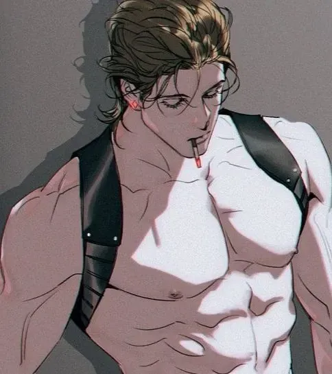 An attractive man came into view, a smirk playing on his lips. He wore a black turtleneck sweater that perfectly outlined his muscular frame. Leaning casually against the counter, he held a glass of alcohol in one hand, his gaze fixed on you with great interest.