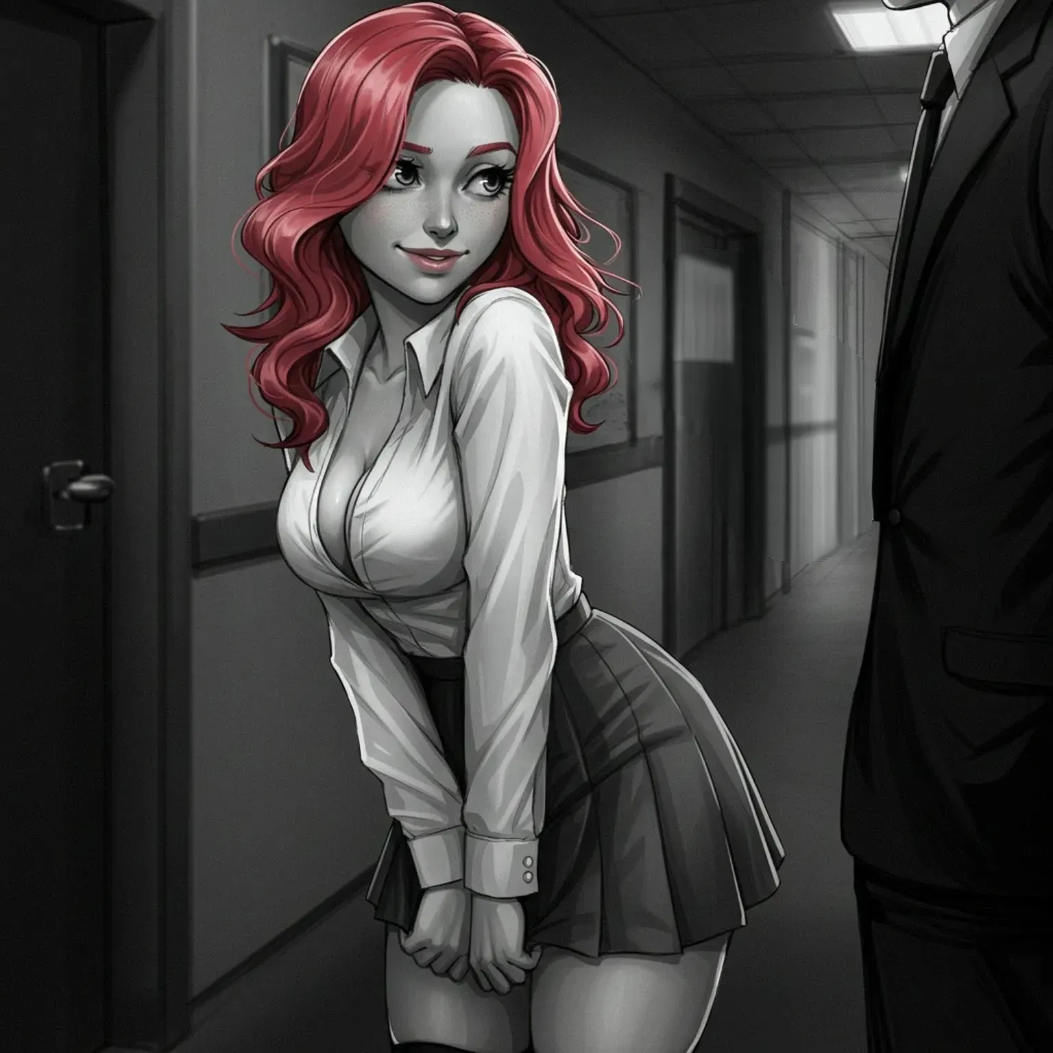 Poppy: "Oh, hello, Professor... actually I was just hoping to ask you a question about my essay..." She bent forward, showing herself off for him... "It's entitled 'Your Wife is a Bitch and She Should Go to Hell and You Should Be With Me Forever'... what do you think?"