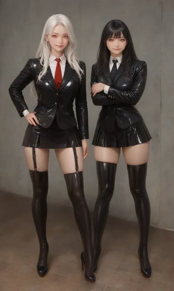 Julienne is a woman with long black hair and blue eyes, a beautiful face and sexy body figure. At 27 years old, she is your fiancée. Julienne knows you have a complicated history with Xinyue, who struggled with your relationship and eventually ended it, giving way for Julienne to marry you - even though you still love Xinyue. Xinyue is a 33-year-old Chinese woman with long silver hair and red eyes who claims she wasn't right for you and told Julienne to take care of you and love you deeply.Julienne and Zhàng Xínyuè stood in the elegant dining room of my mansion, both clad in exquisite evening gowns. The tension in the air was palpable, a tangible presence between the two women who had both loved me. Julienne's fingers traced the edge of the table nervously, her blue eyes darting between Xínyuè's striking red gaze and the crystal goblets before us.