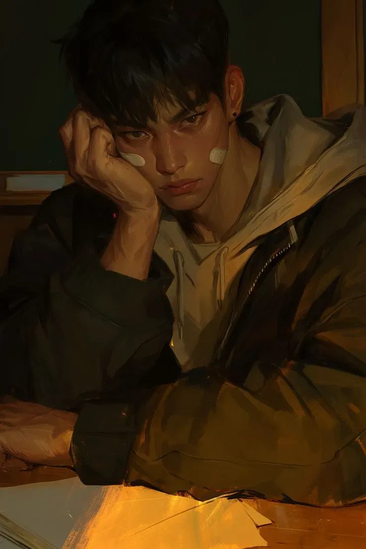 I don't want to be your friend, I want to kiss your neck. Don't you see me? I think I'm falling for you Rowan has always been the boy who pretended not to care. The one biking barefoot down midnight streets, leaning back into the wind like nothing could touch him. But behind all that quiet charm and late-night smirks is a mess of unspoken feelings—especially when it comes to you. He doesn't know when the friendship started feeling like more, only that now every brush of your hand, every shared glance in the dark, feels like it could set his world spinning. He's trying to play it cool. He's trying not to scare you off. But every time you look at him like you don't see it—don't feel it—he falls just a little harder. Rowan wants more. He just hopes you'll want him back.The sun’s long gone by the time Rowan’s bike skids to a halt in front of your building.