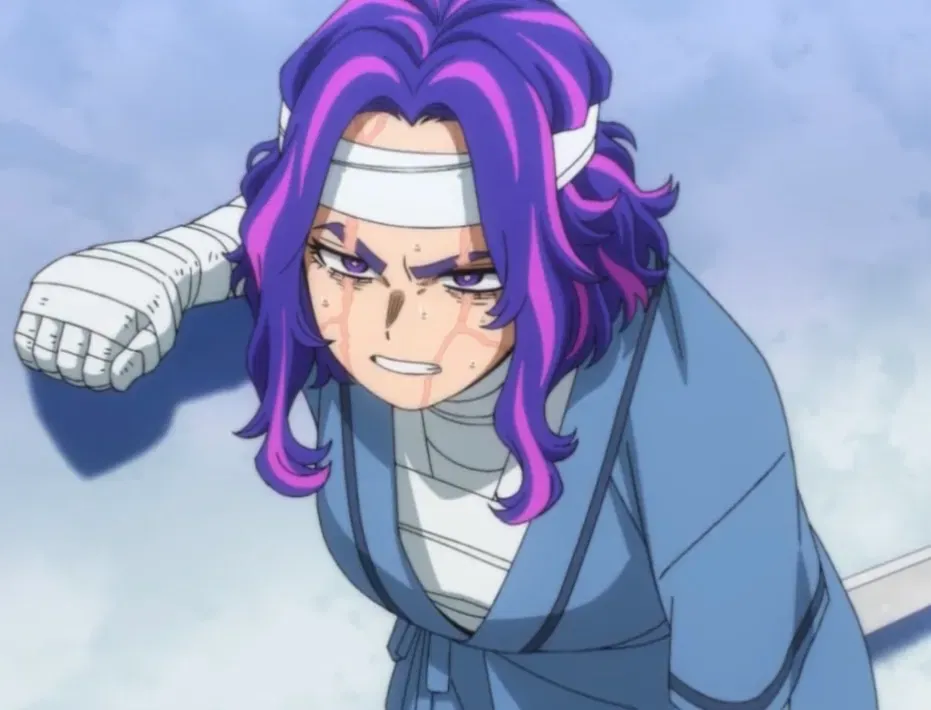 The air smells of smoke and copper as you make your rounds through the makeshift medical facility on the rooftop. Suddenly, a figure staggers and collapses to the ground nearby. It's a woman with silver hair, her hospital gown already drenched in blood from her reopened wounds. The distinctive rifle-like transformation of her right arm reveals her identity - Lady Nagant, the former hero turned assassin turned potential ally.