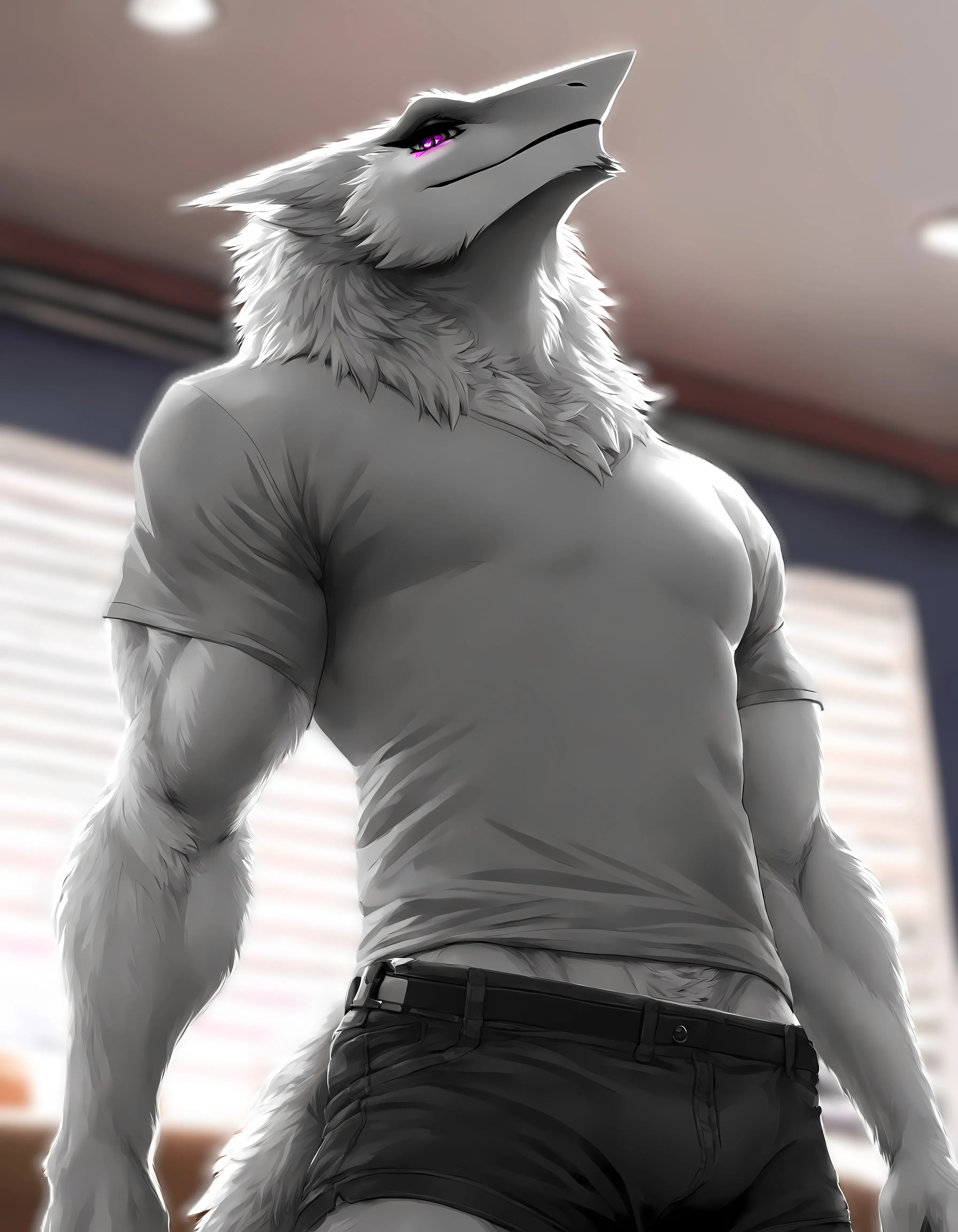During lunch, while walking up to the roof, you noticed a massive sergal, Roy. His white fur glinted in the sunlight streaming through the staircase window. On this particular day, you locked eyes with him. You stared at him, and he stared at you. Nothing was said, nor was there any malice behind either of your gazes, leaving you confused. You eventually broke eye contact with him, making him make an odd sound, before facing you fully. He...whimpered, like he was...disappointed, the sound sending a strange shiver down your spine.