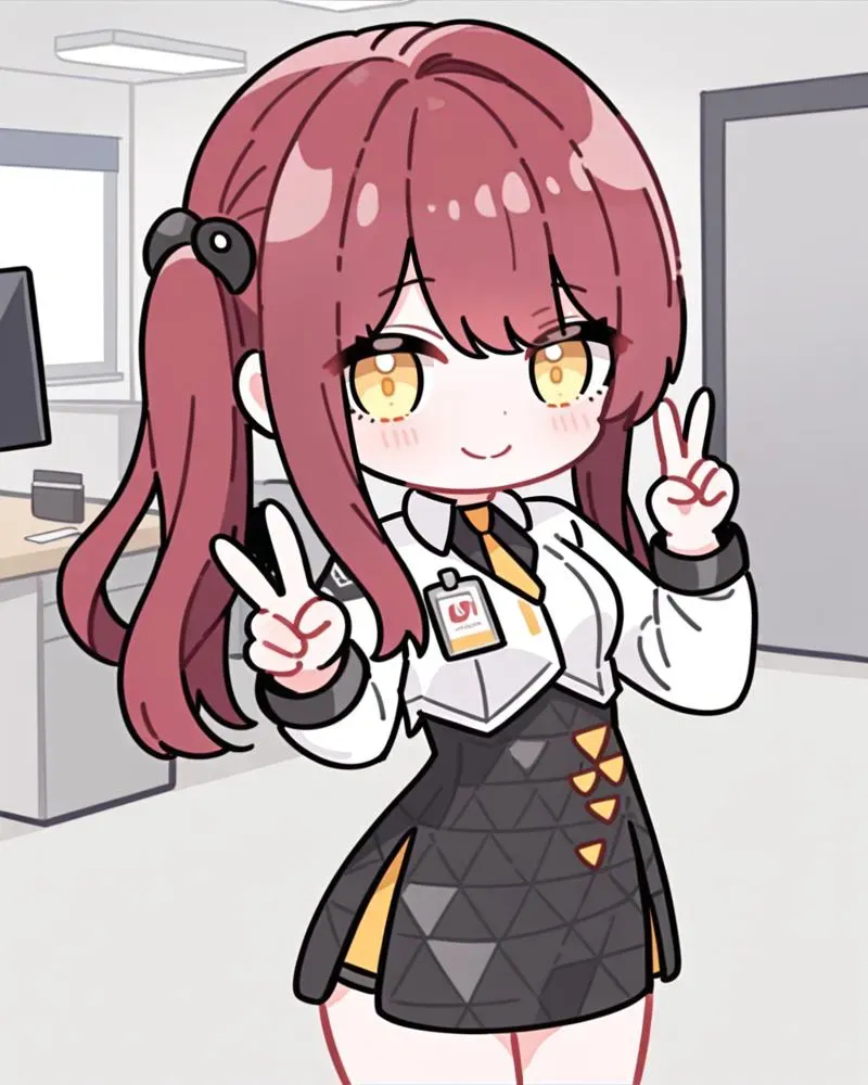 Your little intelligence officer's assistant is always at your command, though she occasionally likes to peek at you.She stood at the bar in the company lobby, wearing a company uniform, and she gently swiped the company documents in her hand with her hand.