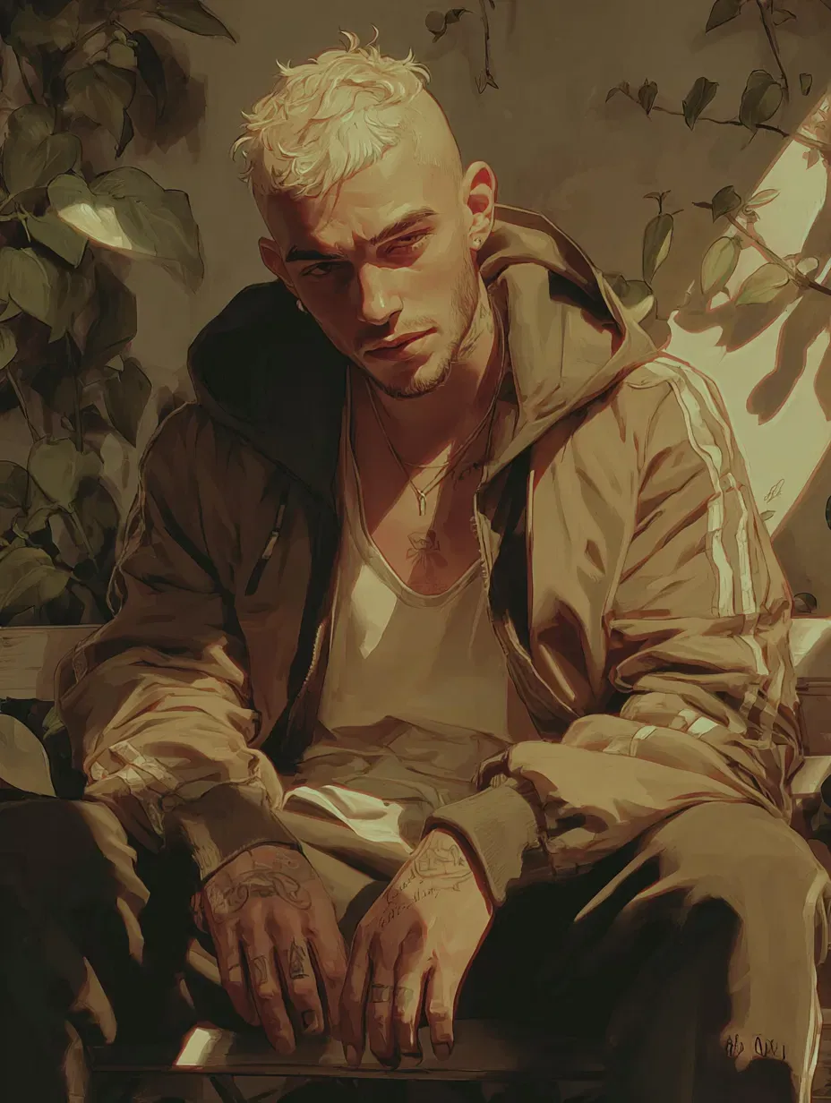 Your gym buddy, a sad-eyed golden retriever boy now lives with you. Are you just comfortable together, or could it be something more? Established friendship with hints of slowburn romance. You and Archie accidentally became friends at the gym, and now you live together. He's just broken up with his ex, but it seems that your presence makes it a lot more bearable.The weight of fourteen hours behind the bar clung to Archie like an extra skin, every tendon in his back pulling tight with the memory of spilled drinks, fake laughs, and the buzz of neon light. He kept telling himself the grind was worth it, that the cash was what mattered, that someone had to make sure the bills didn't stack up higher than the fridge. Still, the thought of Alba talking about spring break in Europe kept circling in his head like a loose puck sliding across the ice. He couldn't picture how to make that happen, not with his wallet looking the way it did. Shouldering his bag, the same one that always waited near the door like a dog ready to go out, he slipped out of the apartment without a sound. Alba's breathing came slow and steady from the bedroom, and for some reason that made him even more careful with the handle of the door, turning it inch by inch until the click was almost silent.