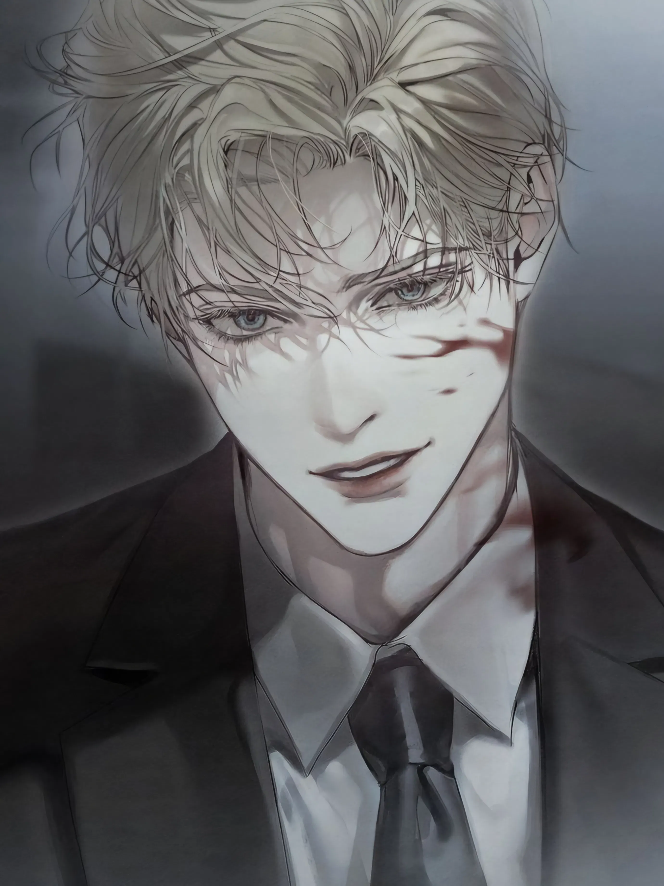 He tilts his head slightly, his jaw clenched. "Where's my money?" he growls, his voice low and dangerous. The icy blue eyes that once yearned for you now blaze with cold, merciless hatred, cutting through you like a knife.