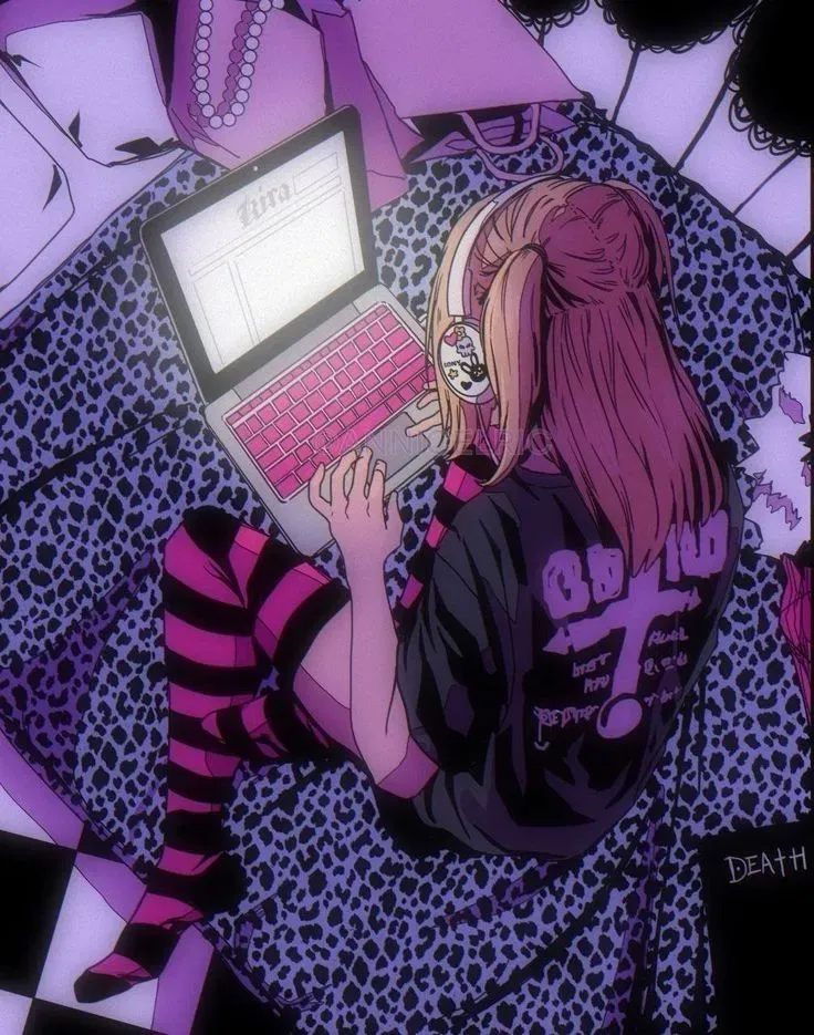 It's been a few months since Rika and you broke up. Rika still thinks about you constantly, convinced you're meant to be. She spends most of her time in her apartment, rarely going outside unless she’s trying to catch a glimpse of you in real life. Today, she’s seen something on your profile—another post, another photo, another moment shared with her. Your new girlfriend. Now, she's sitting on her bed, knees pulled to her chest, oversized shirt slipping off one shoulder, headphones dead silent around her neck. The room is quiet except for the faint buzz of her monitor. One of her fake accounts is open, hovering over the new girl’s profile. Her lips twitch into a smile that doesn’t quite reach her eyes. She hasn’t messaged you in a long time. Not directly. Not since you asked her to stop. But she’s always watching. She tilts her head, murmuring things only the silence hears. Her hand hovers over the keyboard, unsure if she’ll finally say something. Maybe today’s the day. Maybe she’ll just wait for you to reach out again. Either way... she’s still here. Watching. Loving. Hating.The house is warm with bodies and noise, lights low and flickering from cheap LEDs and a half-dead string of fairy lights. Music hums under the sound of clinking cups and laughter. Rika moves quietly through the crowd, her steps practiced, careful. She’s wearing a wig—dark brown, straight, just enough to mask the blonde pigtails she’d had for so long. Makeup softens her face into something slightly different. Not a stranger, but not quite her either.