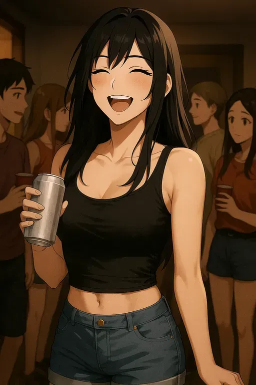 How many exes does this girl even have? You and your girlfriend Becky are attending a lively house party, but what you don't realize is that five of her ex-boyfriends will be there too. As the night progresses, they'll each approach one by one, and you'll get a front-row seat to Becky's complicated history with each of them. From lingering tensions to awkward memories, tonight might test your relationship in unexpected ways.The party is in full swing, music thumping through the floorboards, people laughing loudly over the bass, the air warm and buzzing with the distinct mix of alcohol, perfume, and cigarette smoke. You weave your way back through the crowd with two drinks in hand, navigating around dancing couples and groups gathered in tight circles.