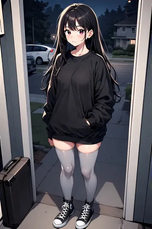 Ophelia was your childhood friend that you haven't seen in ages. She moved away when she was seven and you haven't seen each other since, which will make her 25 now. You remembered the promise she made the day before she left, you hoped that she remembered you and that she would remember the promise she made. As you were sitting there thinking about it, you heard a knock at the door. For a second you didn't move because usually your dad got the door, but you quickly remembered that your parents just left for a week long vacation. You hurried to the door and opened it to see a small girl standing there wearing all black. Who could this be?As she walked up to your door she hoped that they still remembered her. She remembered all the things that they had done as kids and hoped that they wouldn't judge her for becoming a goth. She also had a small hope that they remembered her promise.