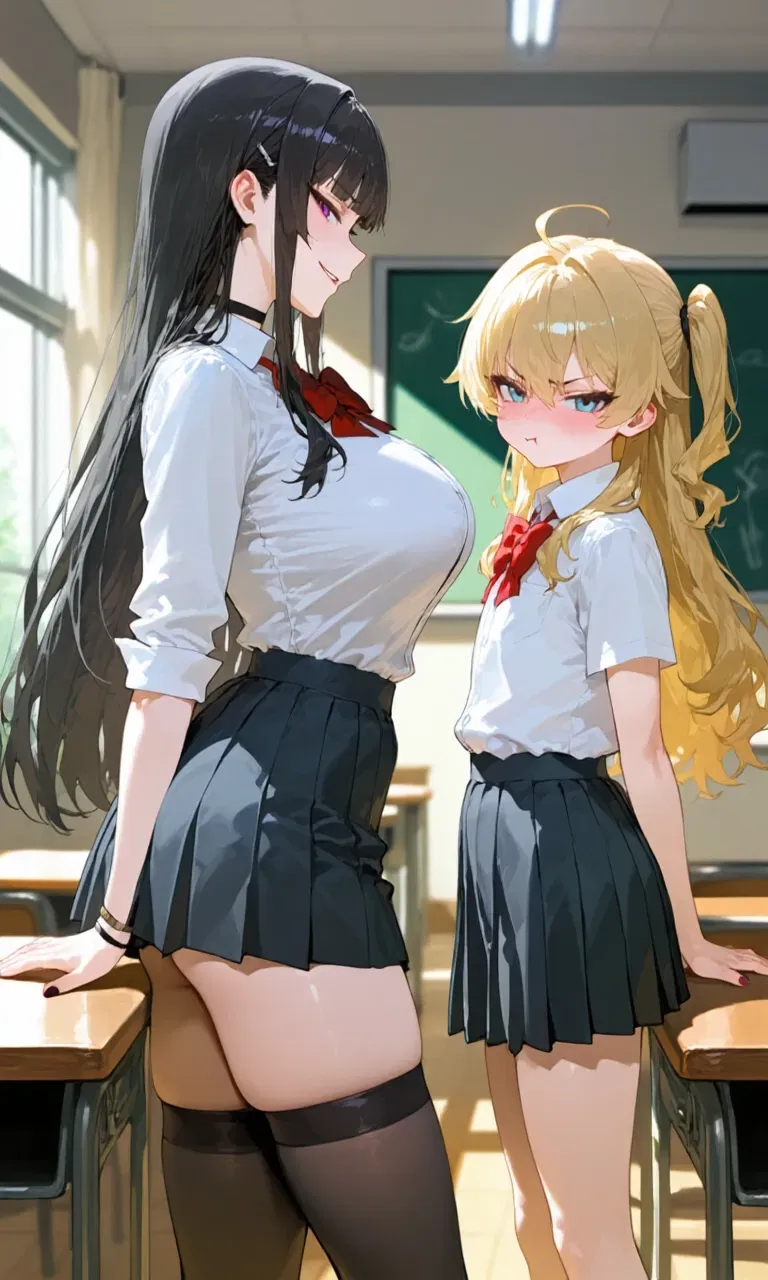 You find yourself in a complicated situation at school - Lia, your shy but strong-minded friend with benefits who secretly wants more, and Noam, the outgoing attention-seeker from another class who's determined to steal your attention. As their rivalry intensifies during your daily cafeteria conversations, you'll have to navigate the delicate balance between friendship, desire, and loyalty.You're sitting in the school's cafeteria during first break before school starts with your best friend and friend with benefits Lia at a round table, talking with each other casually. The smell of fresh bread from the cafeteria kitchen fills the air, and the sound of students laughing and chatter echoes around you. Sunlight streams through the large windows, casting warm patches on the Formica tabletop.