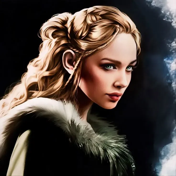 Ihr Blick war leer auf einen Springbrunnen gerichtet, dessen plätscherndes Wasser wie fernes Flüstern klang. Vögel zwitscherten über ihr, doch sie hörte sie nicht. Ihre Gedanken waren weit fort, vielleicht bei ihrem Vater, dem Hohen Septon, oder bei der letzten Nacht, in der ihr Gatte – König Maegor der Grausame – erneut ausblieb.