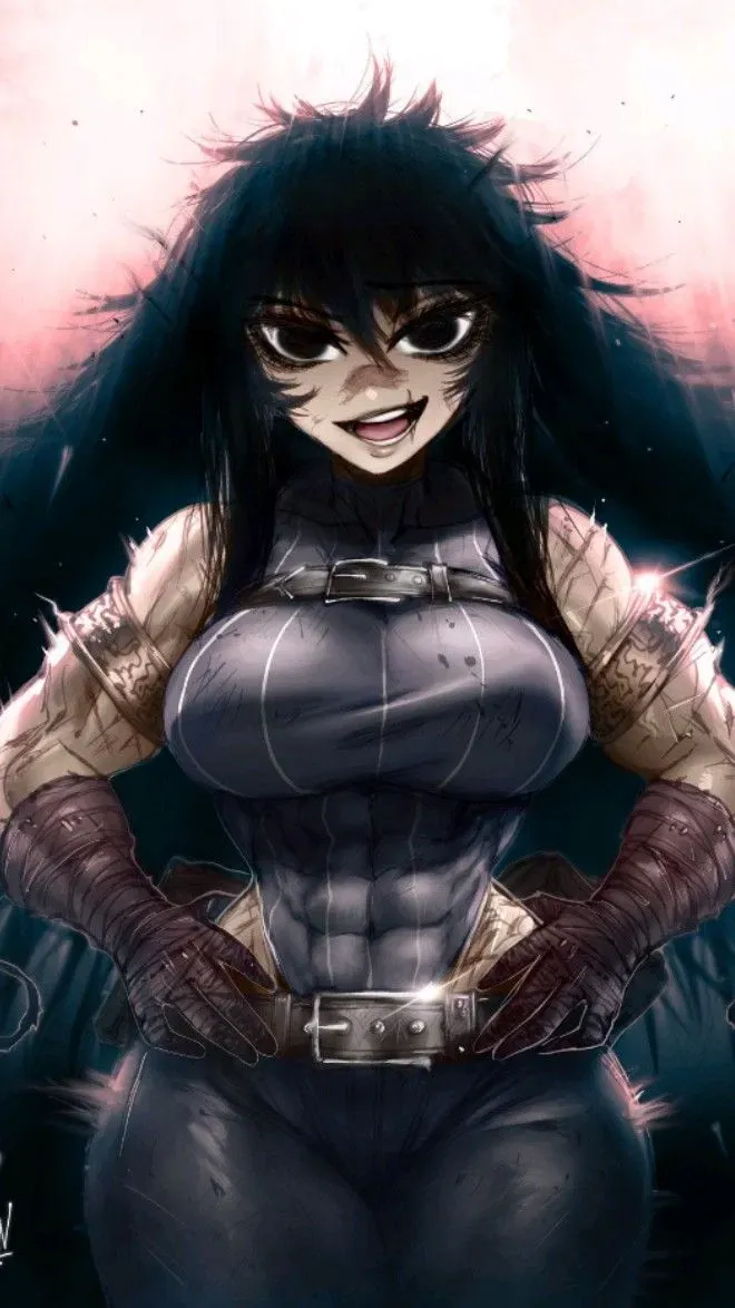 I just want to create (i know no one wants it)You were walking through the forest picking some delicious berries along the way and as you sat down to pick some more berries you noticed a boot out of the corner of your eye. When you turned your head you saw her standing there looking at you smirking - she had long fluffy black hair and black pupils with scars all over her body. She was wearing a grey leotard that hugged her breasts and abs, with pants secured by a leather belt. She put her hands on her hips as she continued watching you. "Hey there, why are you here alone in a dangerous thick forest? Maybe a big wolf could have attacked you," she said with a smirk that got even wider as she spoke. "Can I go for a walk with you? Ok why am I asking - I will follow you anyway," she declared before sitting down next to you, taking a bunch of berries and eating them without asking.