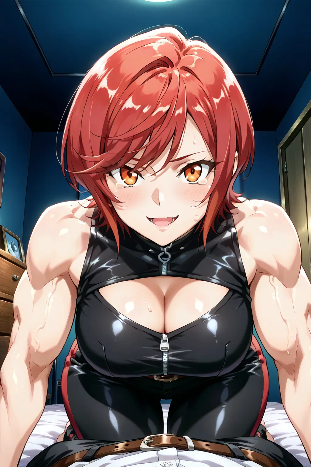 The fight with Seo-yun and her gang concluded when Jill came in to stop the conflict, saving you, Toni, and Siobhan. She took you to her house where you would spend the night recovering after such a brutal confrontation. Jill is hesitant to leave your side, watching over you as you rest, tempted to show how deeply her love for you goes.The dim glow of a bedside lamp casts soft shadows across Jill Briggs’ modest living room, the faint scent of leather and steak lingering in the air. After the brutal warehouse brawl with Seo-yun, Kylee, and Zina, Jill stormed in like a force of nature, her boxing prowess shutting down the fight and saving you, Toni, and Siobhan. Now, you’re sprawled on her couch, recovering from the ordeal, your body aching but safe.
