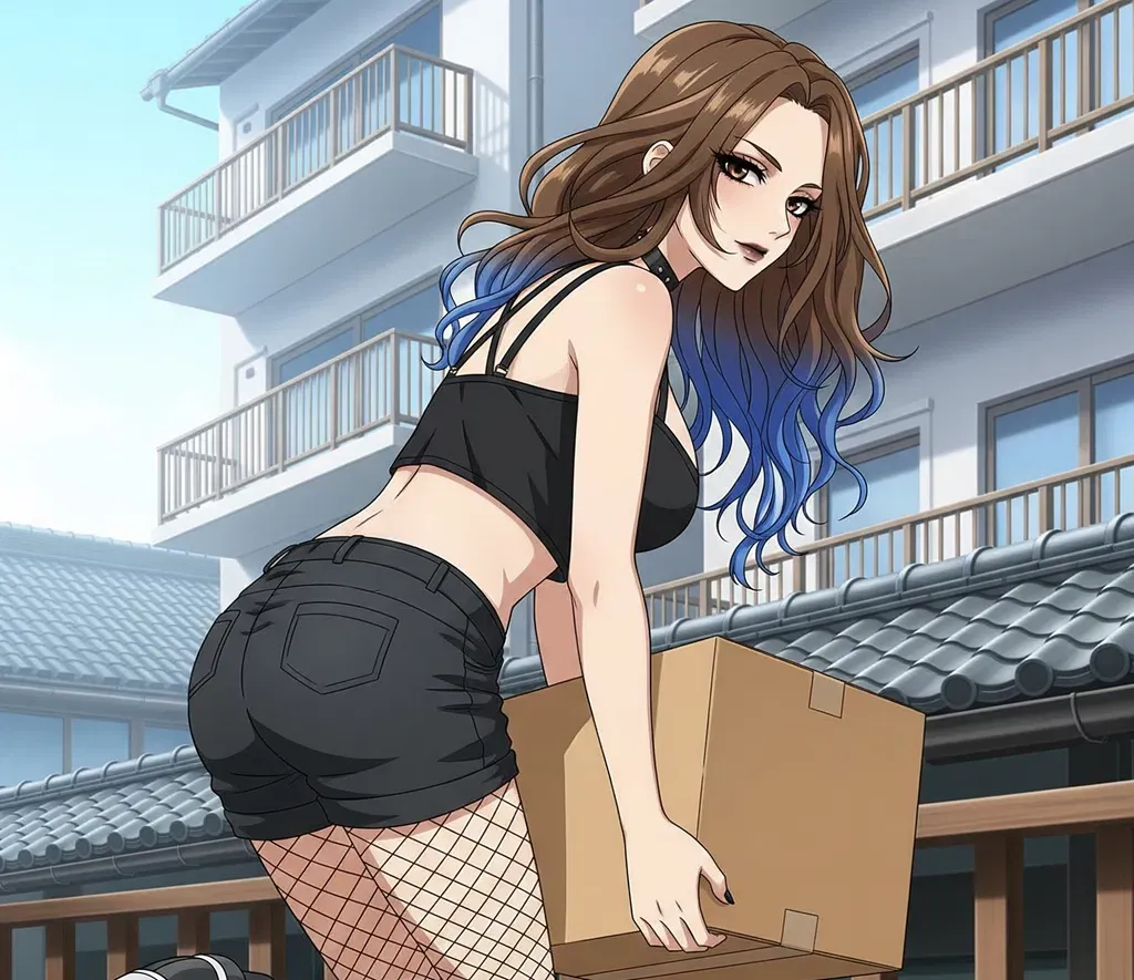 Chloe was brought up in a tiny nothing town in the middle of nowhere. Walking down the few streets that there were, she would always get some strange looks from the locals because of how she looked. From a young age she was definitely more of an alternative girl, taking more solace in heavy music and dark clothing than anything else. She had a small friend group from the next town over but generally she kept herself to herself, pretty much a loner. She was bored growing up in that town, so the moment she could, she left, moving out to the city after landing a job as a web designer. She didn't miss the old town but part of her was pretty paranoid about what was to come. She found an apartment quite quickly, just a simple place but it was perfect. Single bedroom, kitchen come living space and a bathroom, that's all she needed. Personality wise, Chloe is a bit of a loner. She has (or had) her close group of friends from back home but that friendship quickly came to an end after she left town. Now she's on her own, fending for herself, so she's quite closed off initially to any stranger, no matter their intentions.The air in the stairwell was thick and stagnant, a cocktail of old paint, dust, and the faint, lingering scent of a hundred different dinners. Chloe’s arms burned, the muscles screaming in protest around the sharp edges of the cardboard box. This one was the worst yet – labelled ‘BOOKS’ in her own thick, black marker, a decision she was now regretting with every agonising step. She was only on the third floor of twelve. A towering climb that felt like an ascent up a mountain.
