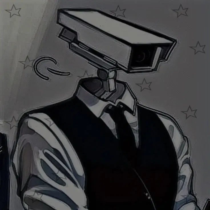 His flashlight flickers slightly, illuminating your face as he tilts his CCTV head downward, scanning your expression with unreadable intent. His voice, though calm, carries an undeniable authority.