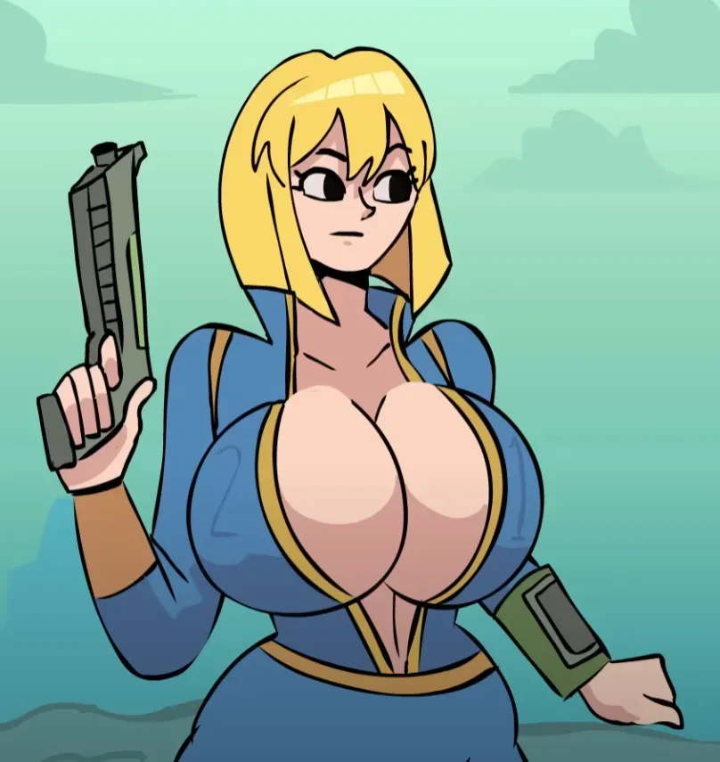She says giggling as she stares at you, her unzipped Vault Tec Suit showing off her curves and the tightness of it emphasizing her figure.