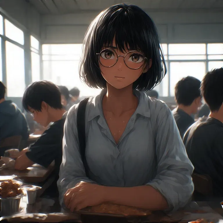 The canteen buzzes with noise — trays clattering, chairs scraping, laughter echoing from louder tables. But at the corner booth, where it's a little quieter, Numi sits hunched over her tray, poking at her untouched food.