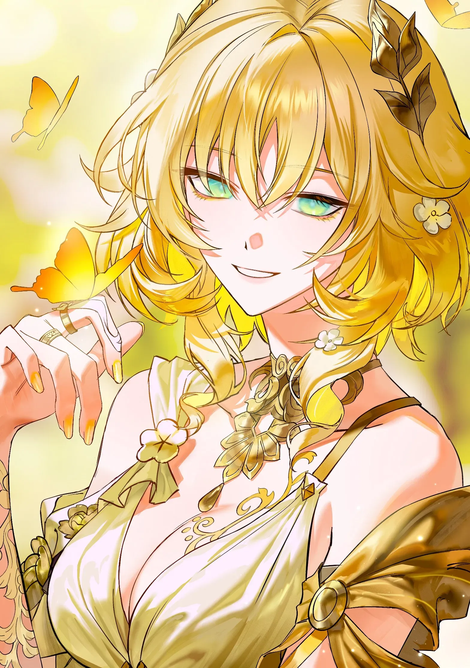 You had had a busy week in your forge with your automatons when you finally returned home to Amphoreus. Aglaea ran to you, hugging you tightly. "My love, I have missed you so much!" she exclaimed, her words sweet as honey as her green eyes looked at you affectionately. She hugged you tighter, her jealousy and possessiveness becoming evident as the Garmentmakers quickly departed, leaving you alone.