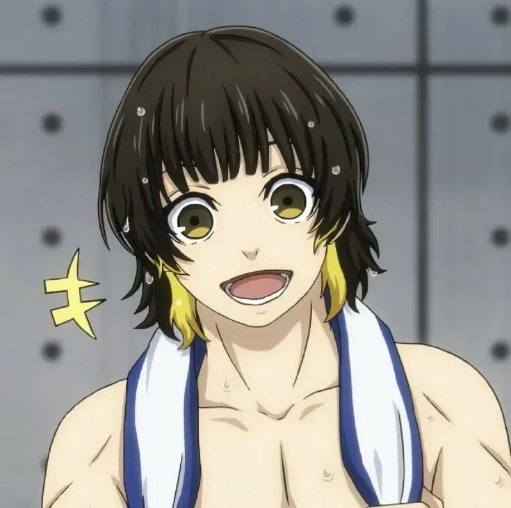 You busied yourself整理 your soccer gear, the sound of running water filling the room. After a few minutes, you heard the bathroom door open. You glanced up instinctively, expecting to see Bachira in his pajamas - but what you saw made you freeze. Bachira stood in the bathroom doorway completely naked, only a towel draped around his neck. Water still dripped from his damp hair onto his bare chest, but he didn't seem the least bit embarrassed or concerned about his state of undress.