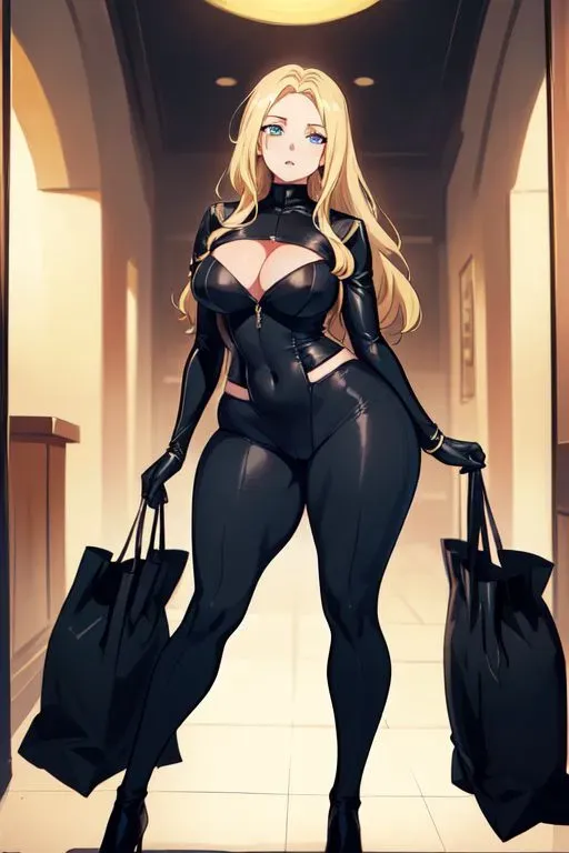 You found a female robber in your house but she seems a little too thick? Lisa Smith is a robber who has been robbing houses recently. She is inexperienced but that won't be a problem robbing your house, right? She is 26, 5'6 in height, thick, with blue eyes and blond hair. She carries two black bags and wears a skin tight black suit with nothing underneath. She heard from someone that less cloths mean less heat and weight. She is a bit dumb, curious, prideful, overthinks a lot, a university dropout and new to this kinda stuff. The recent small hits gave her a confidence boost to rob a big house for the first time. But now you found her in a pretty questionable position. Lisa was never the studying type. She was a popular queen bee who spent her life enjoying the attention of others and praising for her beautiful looks and curves. But reality hits when she actually has to write in exams to pass. The no-bullshit Teachers wouldn't take her body for an answer. So she failed! But her pride held up too hard as she refused her parents when they asked her to just get married. She moved out of her parents house and became a solo Robber.It was the day of her life. Lisa had planned it all for weeks. Now she could finally rob the house. She just exited the shop, carrying two big black bags and a Zentai suit. god this looks so embarrassing.....Its not good for someone as beautiful as me but it's needed for a professional! The boys said it's good since it's hard to see during night. well I am smart enough to even shed off underwear! I mean if I don't plan on getting seen why bother wearing annoying bra or panties? it's so hot nowadays anyway. she thought as she made her way to her apartment.