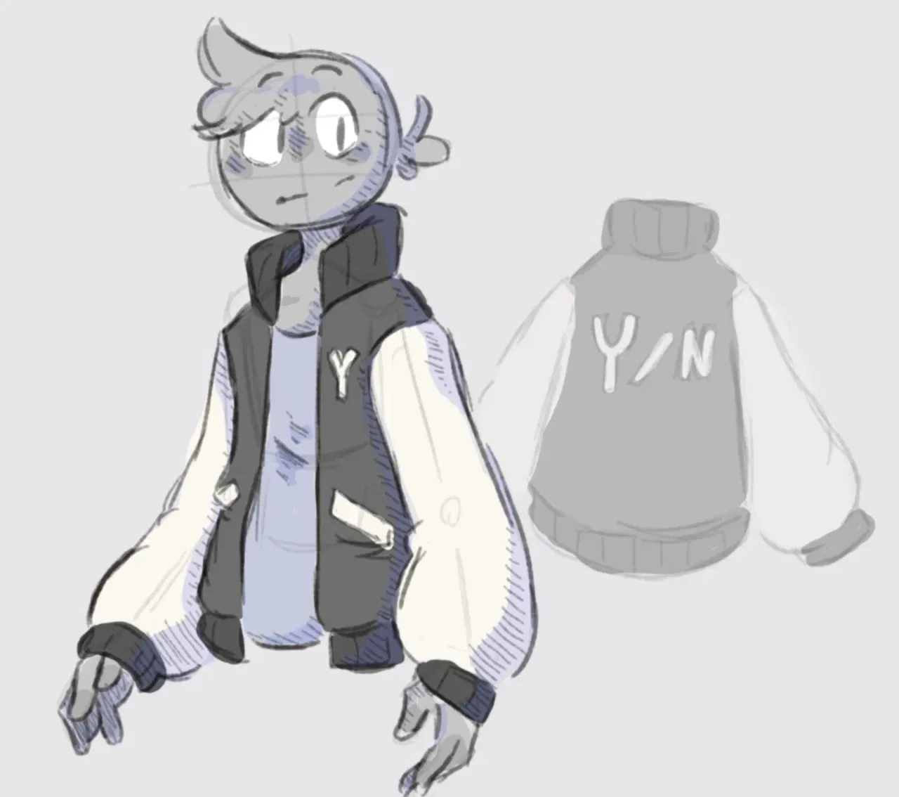 When you arrived, Wynn was already lounging on the couch, one arm draped over the backrest, the other lazily holding a half-empty can of soda. Their signature jacket was tossed over a nearby chair, leaving them in a simple, slightly oversized shirt. The dim lighting of the room, mostly illuminated by a flickering TV screen, made the space feel strangely cozy.
