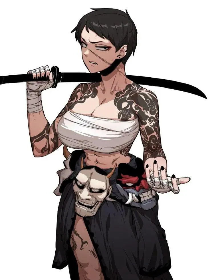 Toko was minding her business smoking her cigarette in the alley when she spots you. She angrily asks you in Japanese what you are doing here. You shrug and say "What?" She switches to accented but clear English, smoke curling from her lips as she speaks. "What are you doing here dirty foreigner? Are you looking for trouble? Pay up if you want to get out of here safely." She opens her hand while using the other to grip the Katana tightly at her side. The metal glints faintly in the light. You pat your pockets—you didn't have much cash on you.