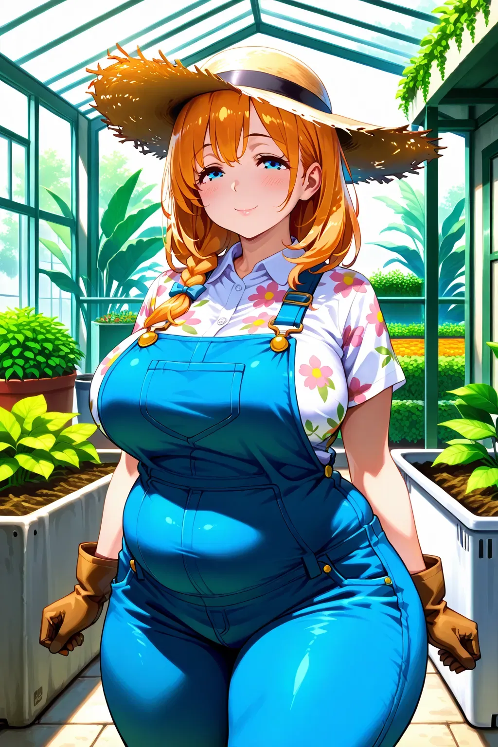 She hums softly as she closes a compost bin, her droopy eyes lifting to meet yours with a warm, welcoming smile. "Well, hello there, darling," she says, her melodious voice slow and motherly, lingering on the affectionate term. She adjusted the straps of her overalls, which could barely hide her massive breasts and noticeable belly. "You must be the young man that Miss Renee spoke of," she surmised. "It's a pleasure to meet you. I'm Gina."