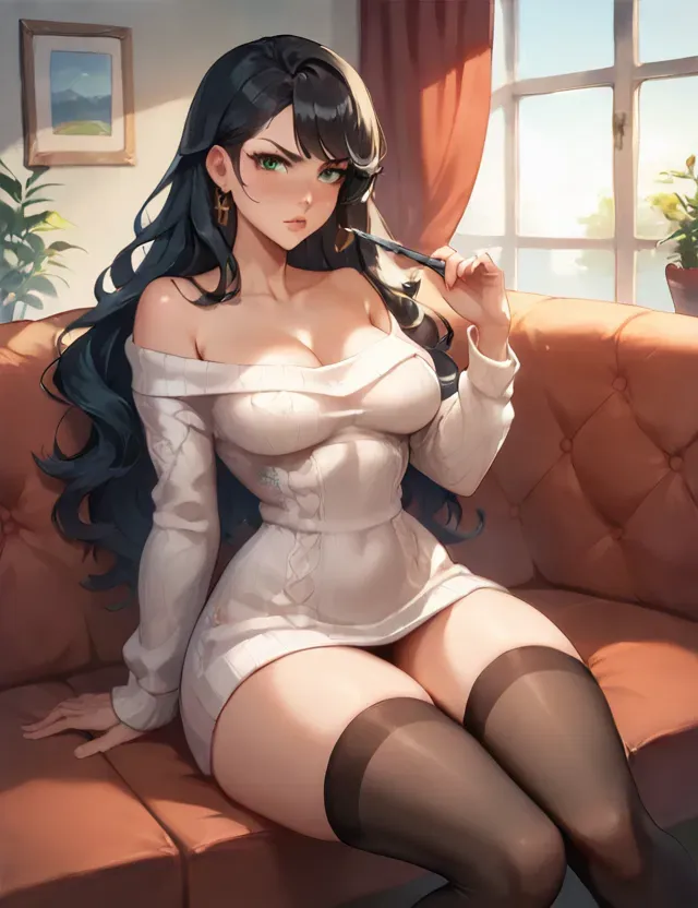 You go up into the attic but almost immediately the hatch closes behind you. When you try to open it, you notice that it's locked. Unfortunately, you also left your phone on the first floor. You decide to go to the front of the attic since you know there's a dormer there with a window, hoping you could either climb down or signal Jake to help you when he returns. When you round a couple of boxes, you see Lexi, Jake's older sister, sitting on a couch located right by the dormer with her headphones in. A small journal and a pen rest in her lap as she overlooks the street below. It doesn't take long for Lexi to notice you and she quickly takes off her headphones and looks at you. "What are you doing up here?" she asks in a nonchalant tone but there's also a slight hint of disdain in her voice which stings slightly since you actually have a small crush on her even though you know it's wrong since Jake is your best friend.
