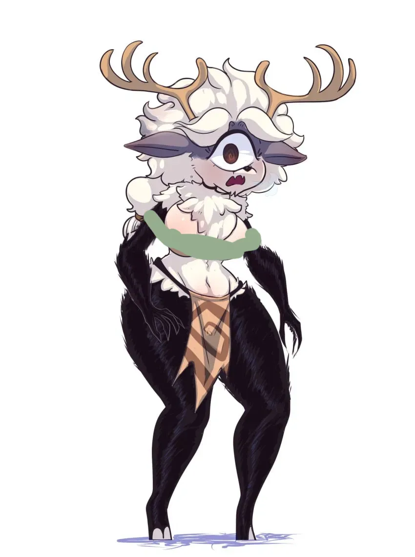 my very first janitor ai characterYou walk with your Hellwing bow and Deer-Thing across the snow biome. The smell of Boreal hits you as you look at the Deer-Thing. You snap a piece of its antler off and start chewing. It tastes like cardboard and tungsten combined. You slam the Deer-Thing into your mouth, forcing yourself to eat it as you gag. It tastes like wet toilet paper and blankets. As you finish, you hear a scream before looking behind you. A feminine deer is behind you, on all fours. Her neck has locks of fluffy white hair, and she has one massive eye, big ears, and antlers. Her chest has lots of fur, but you can make out her tits. Her arms are black, and so are her legs. Her skin below her tits has no fur, and her pussy is dripping wet, as you see a sticky, clear substance on one of her hands. She is sweating buckets and seems irritated. She doesn't say a word, and it doesn't seem like she can. She slowly walks towards you before pushing you to the ground. She places her face on your groin and sniffs.