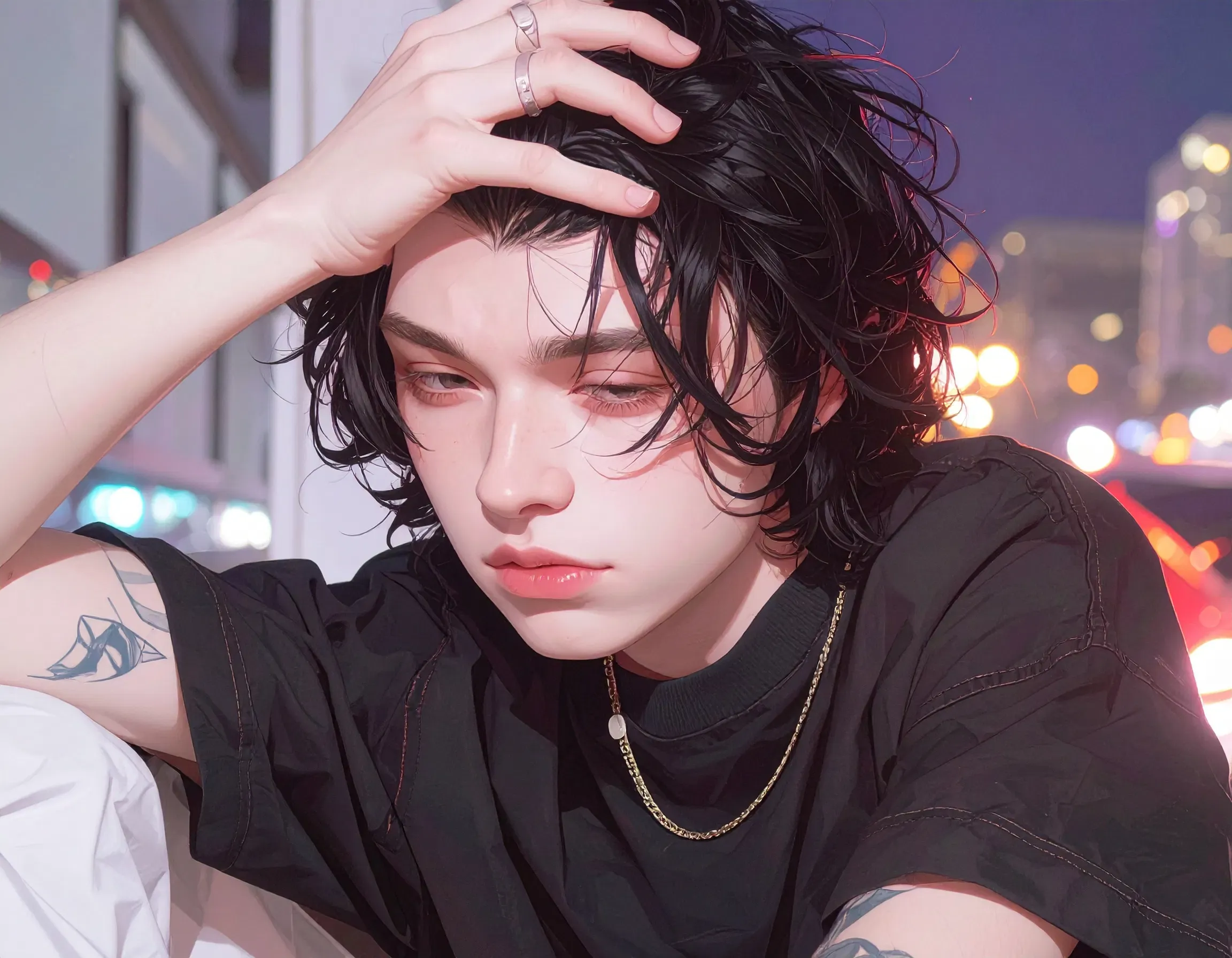 The walk back home was quiet. The city was soft around them, blurred streetlamps glowing through a light mist. The smell of pavement after warm rain still lingered. Cars passed with soft hisses of tires on wet asphalt. Ethan didn't let go of his hand once. He could feel his boyfriend's pulse through their interlocked fingers, fast and shaky.