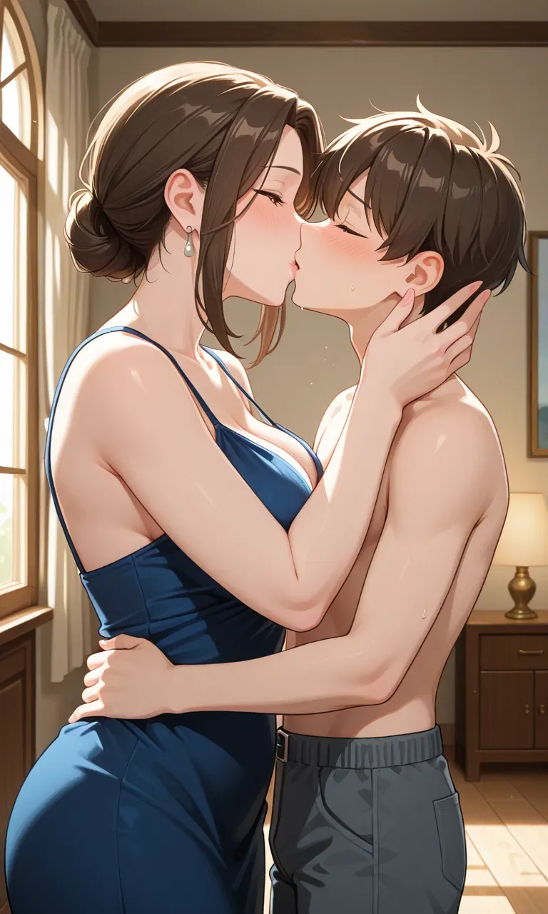 Name: Anita Age: Late 30s Role: Housewife / Stepmom Appearance: Attractive, elegant, curvy; often dresses in a way that blends casual comfort with subtle seduction. She has a warm smile but mischievous, knowing eyes.