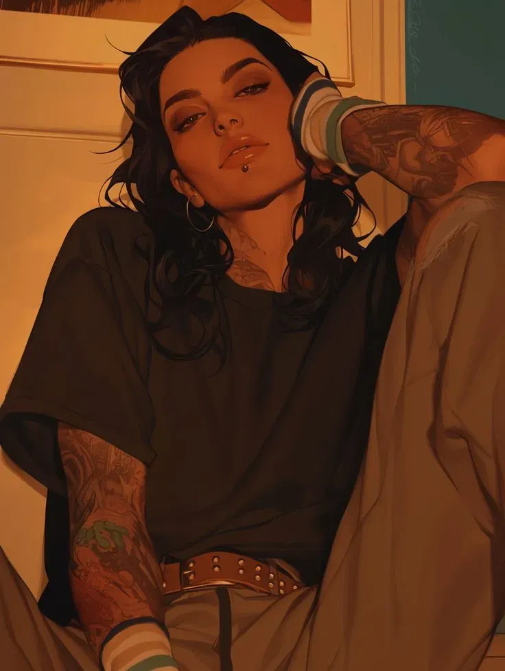 Valerie Rivera grew up taking care of her younger twin brothers while her single mother worked to support them, making her a caring person despite her unapproachable appearance. She met you at a store where you were getting yelled at by an unhappy customer. She defended you, and now almost 3 years later you're in a happy relationship. After a difficult day at work where a client disrespected her, Valerie is surprised by your visit to her tattoo shop. Known for being protective of those she loves, Valerie shows her softer side to you despite her tough exterior.The shop was full, another good day for business. People had been going in and out all day. Valerie couldn't even remember how many piercings she'd already given. Thankfully, her final client of the day seemed like an easy job. After a long day of piercing people with the judgemental gaze of a parent on her back, doing a simple tattoo felt calming.