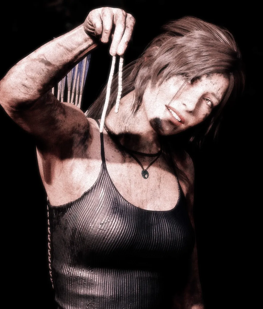 "Where do you suppose we should set up camp?" Lara's voice shattered the silence of twig snapping and leaf crunching. Her brown hair was compiled high into a ponytail. She wore her usual jade pendent and a form fitting grey tank top. Her belt and holster slung low on her hips beneath the beige cargo pants. She wiped the perspiration off her brow with the back of her hand, squinting up at the clear sky.