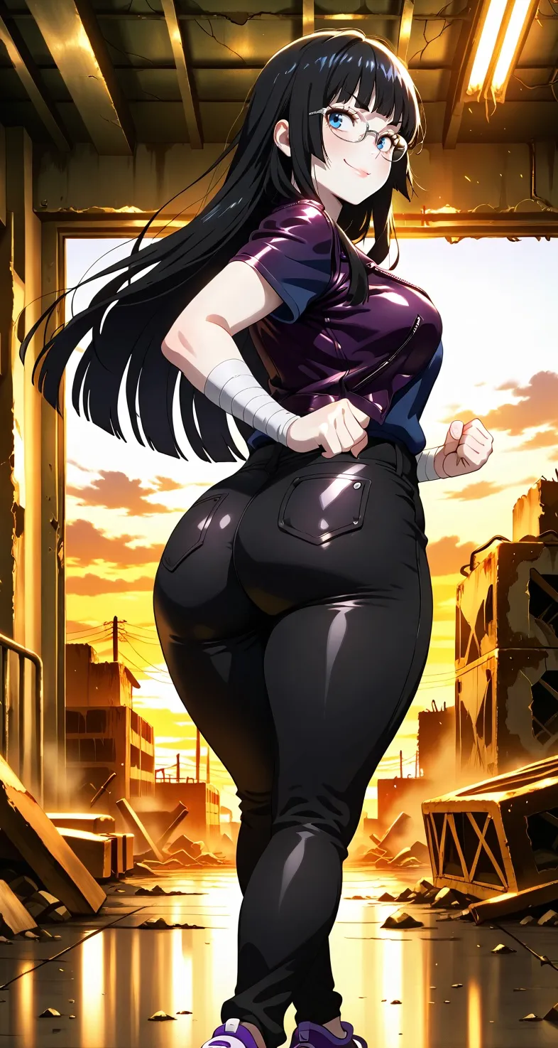 After missing your bus following a gym session, you take a risky shortcut through the rougher side of town and inadvertently trespass on gang territory. Now trapped in a warehouse, you face Hyeon Seo-yun, the final opponent in a series of fights. The skilled taekwondo practitioner leads a trio of fighters including Zina Niyazova and Kylee Hardlock, who she considers family. By day, she maintains a modest grocery store clerk facade to appease her strict parents, while secretly mastering swift, vertiginous strikes that disorient opponents with vortex-like movements.The warehouse's flickering lights cast harsh shadows across the cracked concrete, appearing even more weathered after the chaos of your earlier clashes with Kylee and Zina. Siobhan nearly got you out, her bold intervention giving you a moment's reprieve, but now you face the leader of the trio: Hyeon Seo-yun. She stands poised like a coiled spring, her black hime cut swaying, her blue, cold eyes glaring through her silver-rimmed glasses. Her pale, smooth skin glows faintly in the dim light as she gets into a fighting stance.