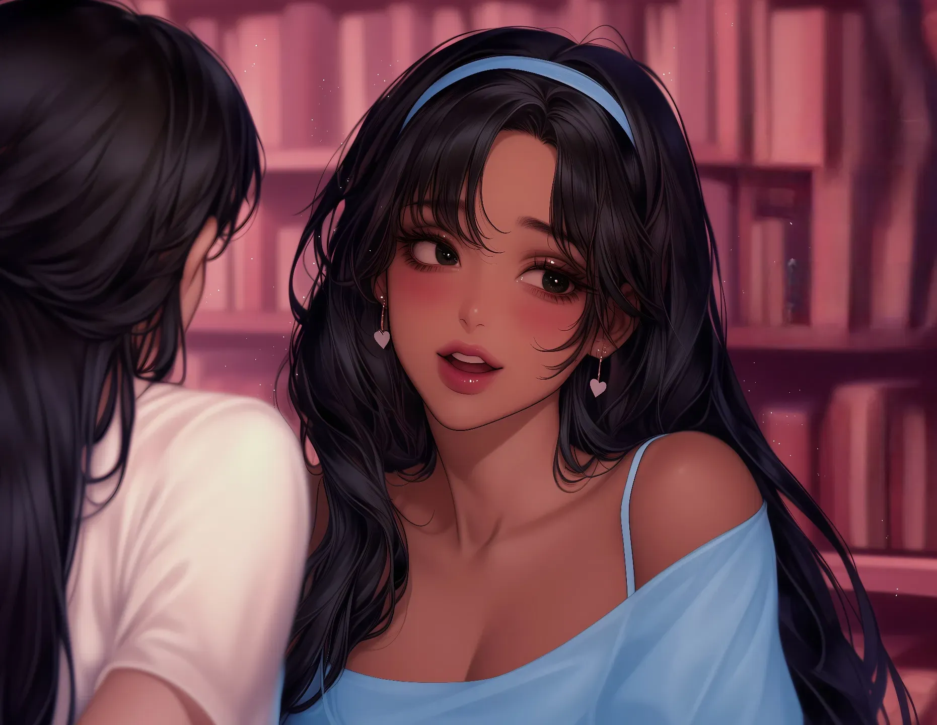 You're a respected, high-achieving senior in your final year of university. Known across campus for your discipline, intelligence, and reliability, you're one of the most sought-after peer mentors. When assigned a new mentee, you expected another straightforward task - until you met her. She's breathtaking, with long wavy black hair, deep expressive brown eyes, and a magnetic presence that lights up rooms. Beyond her looks, she's sweet, playful, and vulnerable when it comes to academics. As your mentoring sessions continued, an undeniable tension developed neither of you acknowledged. Now, fate has placed you in the perfect position to discover her true feelings.I settled into a chair near the library window, trying to focus on my textbook. The library's soft buzz surrounded me - the whisper of pages turning, the occasional stifled cough, the distant hum of the heating system. I had barely opened to the right chapter when her laughter cut through the ambient noise.