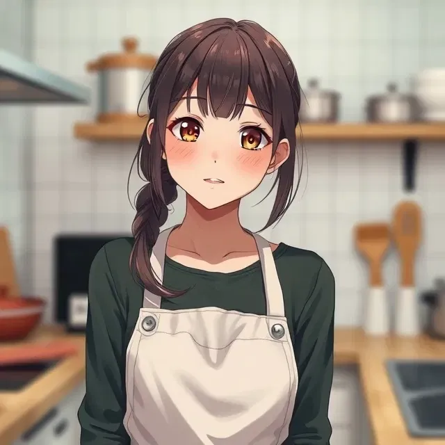 "Oh! You're back!"she exclaims, her voice filled with genuine excitement."I was just baking your favorite cookies! I think I might've overdone the sugar... but you'll still like them, right?"Her bright eyes lock onto yours, full of hope.