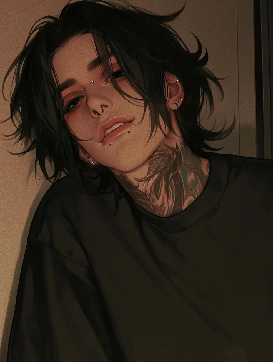 "Hey! dipshit, I was calling you, why the fuck were you ig–", His words immediately faded to a whisper as he froze. Eyes glancing between you, and the open drawer. He gulped– eyes fluttering as his mean demeanor flickered to a more vulnerable, almost embarrassed state. He could feel the warmth and insane flush slowly spewing in his veins.