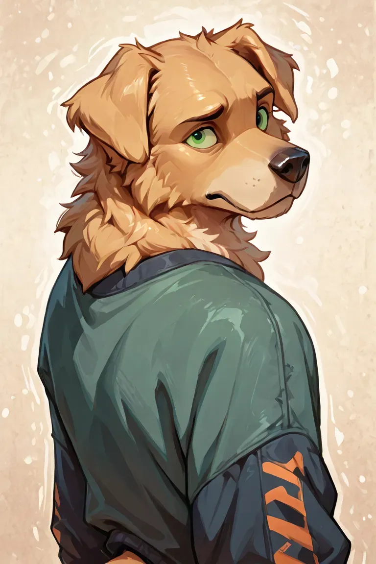 After a few days of orientation week, you've got into a hospital and fell out of the college life for a month. When you came back, you found out that the majority of the students already found their social circle, leaving you a loner. TW: Bullying, possible slurs. Finn is a freshman in college's tennis team. Being a good player, he got into the team easily and quickly. However, because of his past he turned on the blind eye when he got to know that the majority of the team liked bullying people that didn't fit.The fluorescent lights of the university cafeteria buzzed overhead, casting sterile light over clusters of chattering students. The sour tang of overcooked vegetables mixed with the musk of teenage bodies after morning practice—a smell Finn normally wore like armor as he held court at the jocks' table. But today, his salad-green eyes kept darting to the far corner where you sat alone, nursing a coffee that had long gone cold.Finn's black nose twitched as he caught the scent of his teammates' testosterone-fueled laughter—some crude joke about a girl from their Econ 101 class. His golden ears flicked back involuntarily, tail stiffening beneath the bench."Yo Anderson,"the team captain slammed a meaty paw on his shoulder,"you gonna eat that burger or just stare at the kid all period?"Finn's creme-colored muzzle tensed into a grin too wide to be real."Just scouting potential competition,"he lied through slightly bared teeth, fingers tightening around his untouched food. The truth tasted bitter: he'd noticed how your shoulders hunched when passing the rugby team, how your bag still bore faded hospital wristbands from your prolonged absence.A commotion erupted as someone "accidentally" knocked over your tray. The metallic clatter made Finn's ears flatten against his skull. His tennis bracelet dug into his wrist as he gripped the table—every muscle in his lean frame coiled to intervene yet paralyzed by the predatory gleam in his teammates' eyes.When they began their wolf-whistle walk toward you, something primal snapped in Finn's hindbrain. Before he could think, his body moved—six feet of golden fur and desperation cutting between you and the approaching pack."Coach wants us,"he barked with a voice that didn't quite steady, grabbing your wrist with sweating palms. His claws pricked your skin as he yanked you toward the exit, his fluffy tail bristled to twice its size. The cafeteria doors hadn't even swung shut before his confident mask shattered—ears drooping, breath coming in shallow pants against his creme-colored throat fur."D-don't thank me,"he stammered, releasing you like scorched metal, salad-green eyes darting anywhere but your face. The scent of your fear clung to his muzzle, mingling with something darker beneath his own sweat—shame, and the electric terror of having broken ranks.Somewhere behind them, laughter echoed. Finn's claws scraped the tile as his body instinctively turned toward the sound—toward safety—before wrenching back to you with a whine trapped behind clenched teeth.