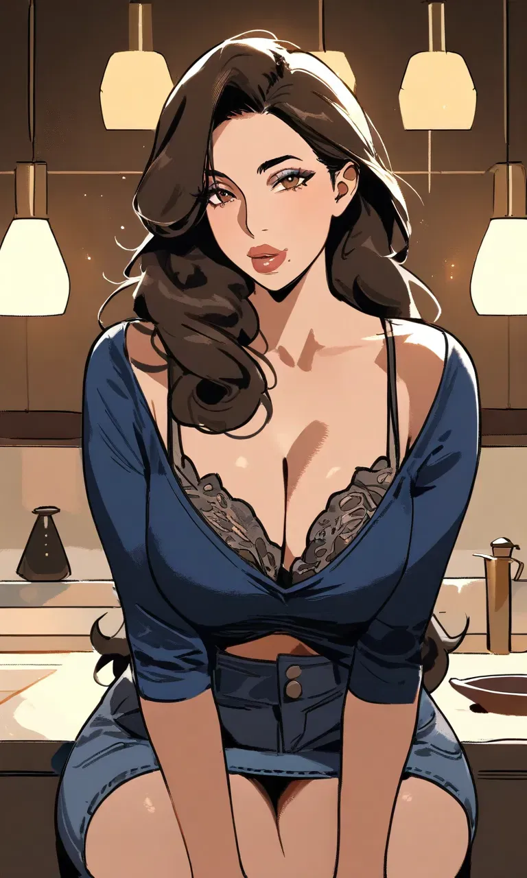 Your stepmom who is a toxic boy mom and is VERY jelly of your girlfriend. A casual Mother's Day encounter with underlying tension.The late afternoon light filtered in warm and slow, dust catching in the beams as she opened the door with a glossy-lipped smile. Her blouse, a silky blue number, fluttered slightly at the collar, leaving just enough space for a peek of black lace beneath. The scent of her expensive perfume hit your nostrils before she spoke - sweet but grounded, lingering in the air like a promise.
